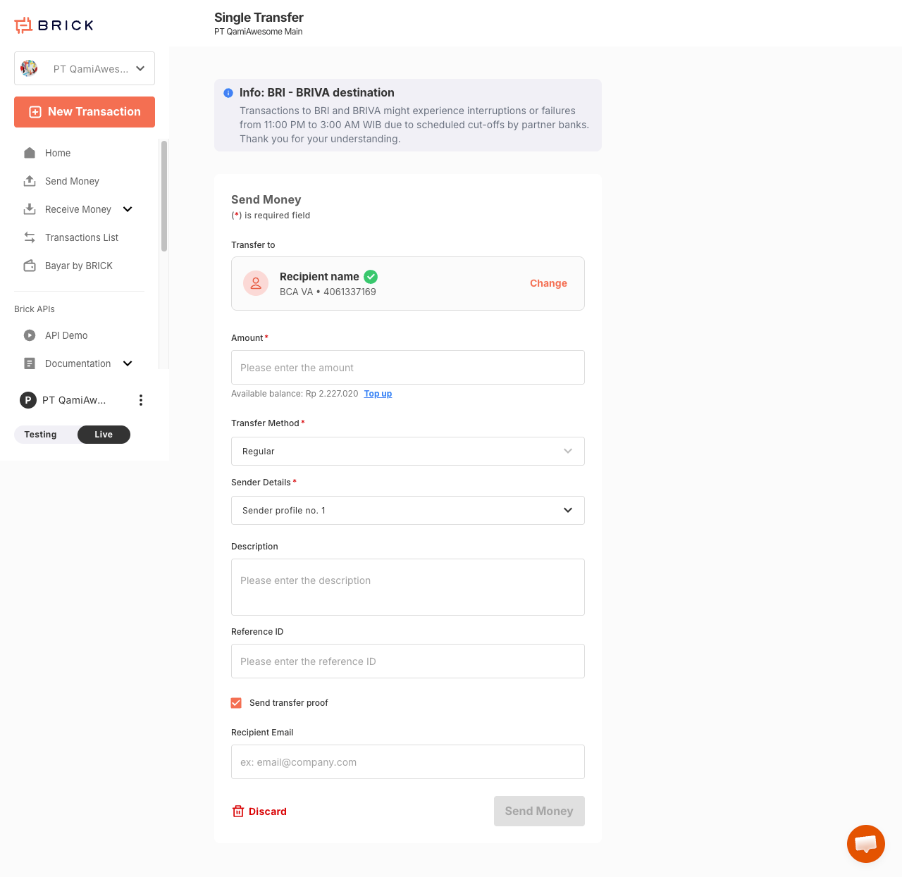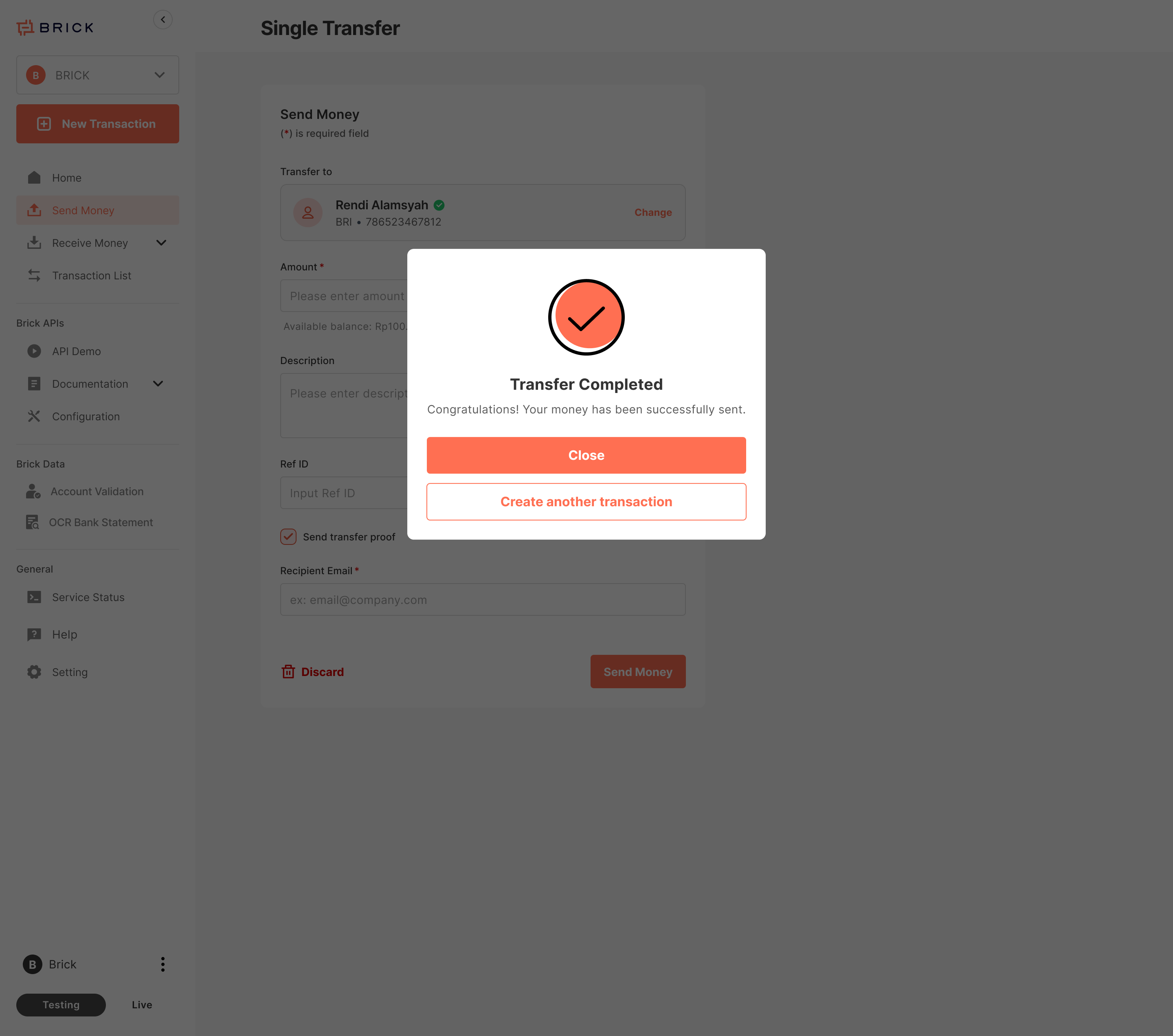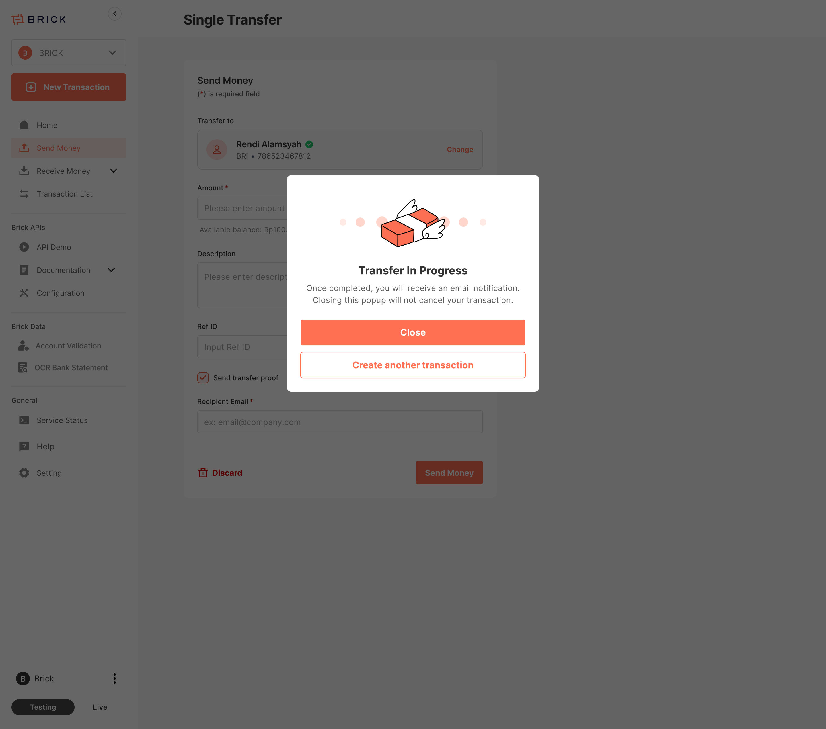 - Send Transfer Proof: (Optional) Check this box to enter the recipient’s email for an automated receipt.