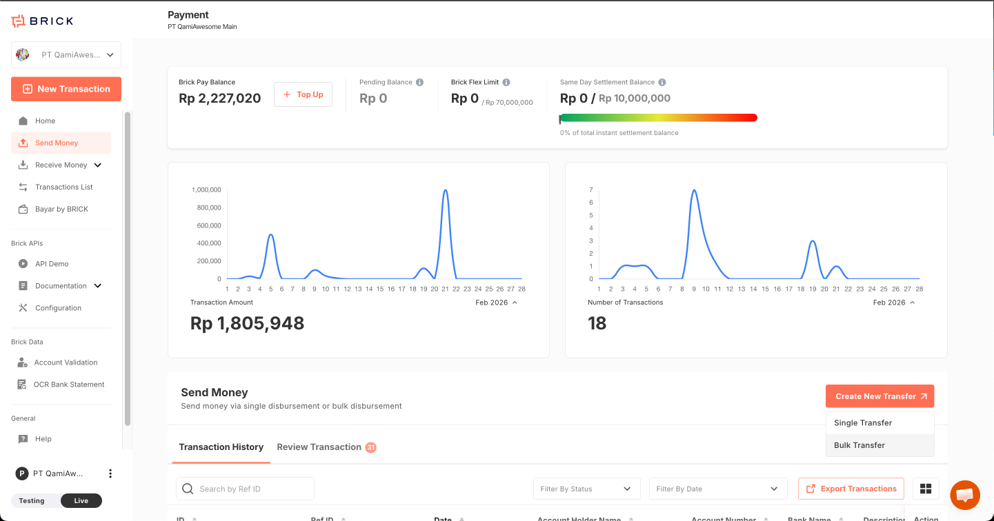 Transfer available balance from the platform to your registered or preferred bank account for settlement or operational use.
